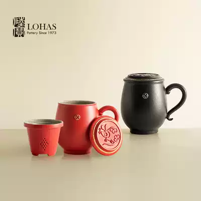 Lubao flagship store year-old Fenggai cup tea tea separation Cup Office water Cup rich red ceramic cup customization
