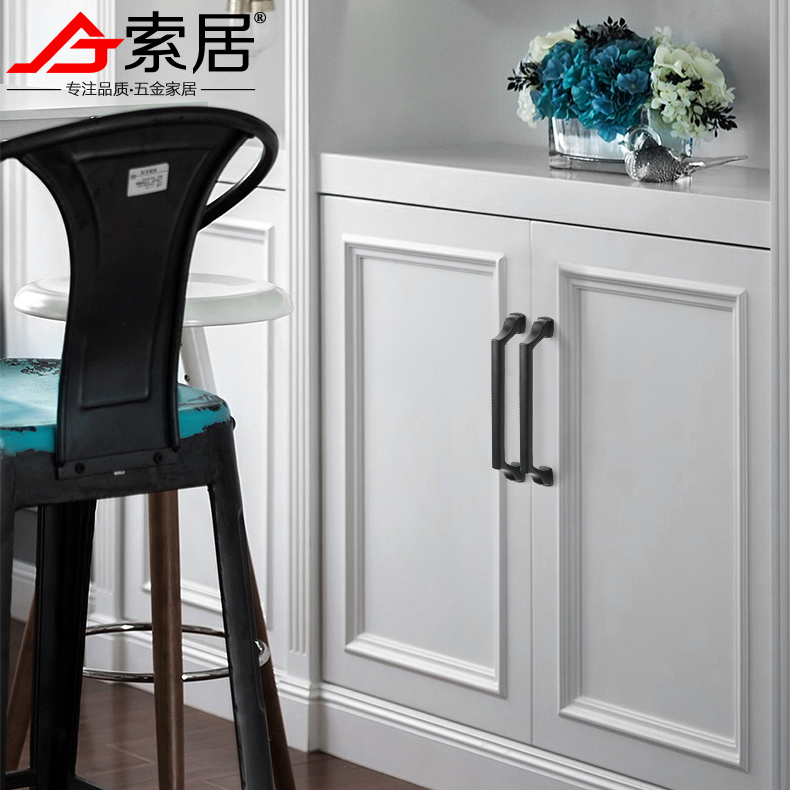 Soju cabinet door overall cupboard drawer handle American modern minima New alloy lengthened Nordic black wardrobe door handle