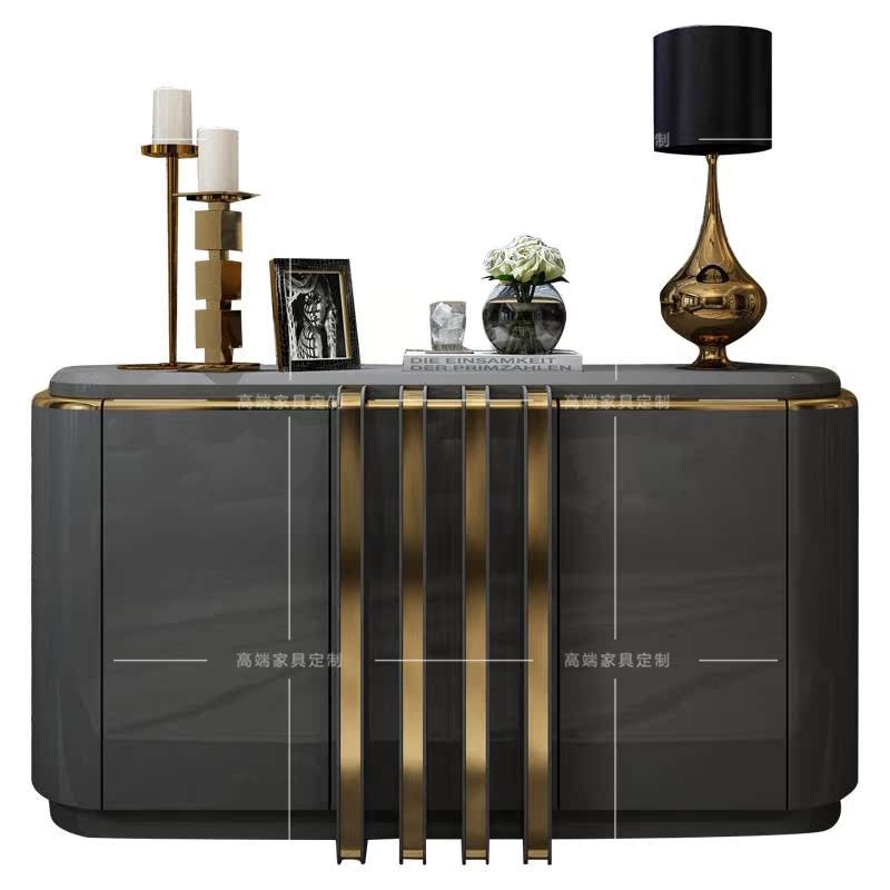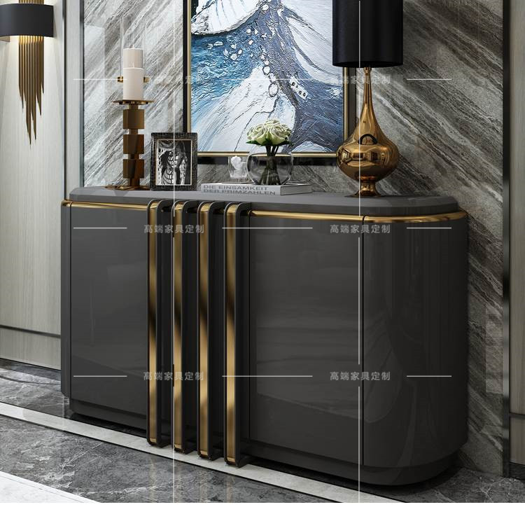 Modern light luxury porch cabinet gray bright hallway cabinet solid wood TV cabinet combination simple American decorative cabinet customization