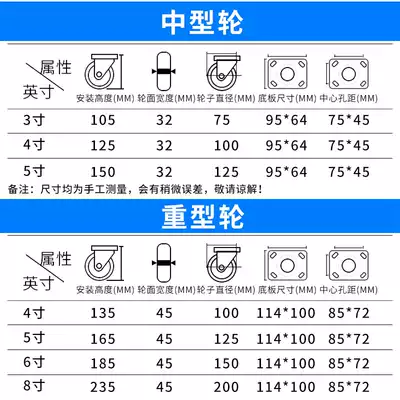 Medium-sized 3-inch universal wheel medium-sized 3-inch directional wheel medium-sized 3-inch brake wheel medium-sized 4-inch universal wheel medium-sized 4-inch directional wheel medium-sized 4-inch brake wheel medium-sized model 5-inch ten thousand