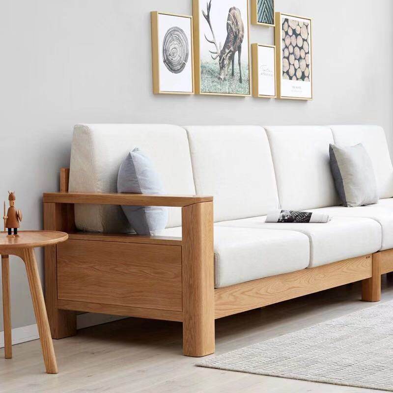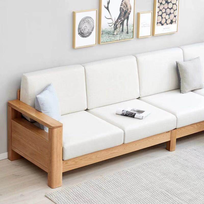 All solid wood sofa Nordic small apartment oak sofa combination modern minimalist log corner sofa living room furniture