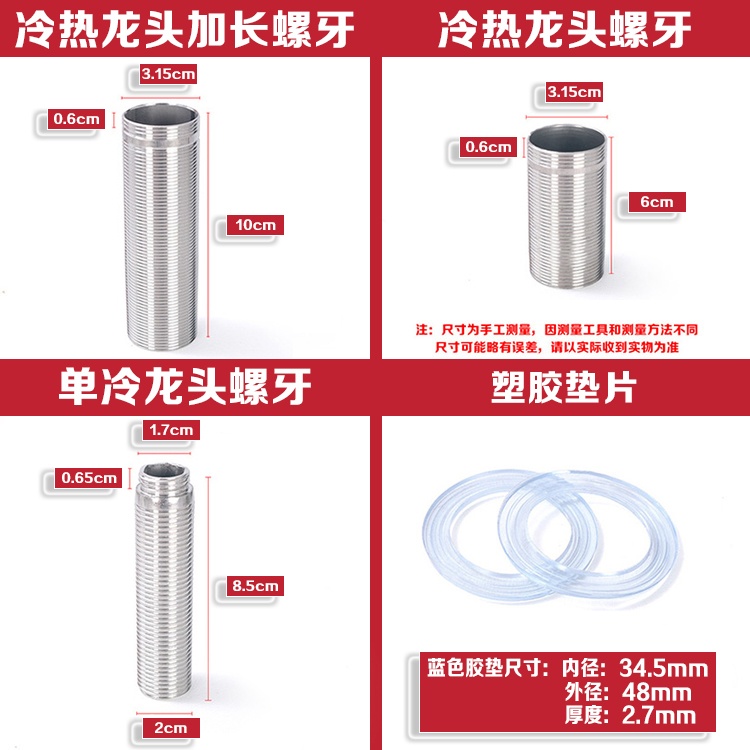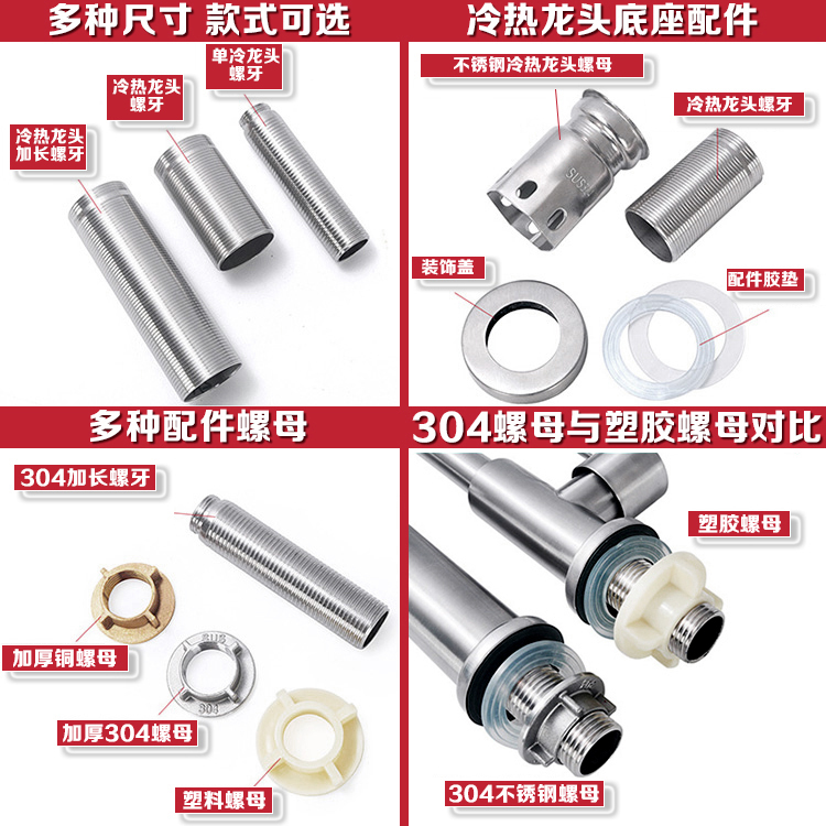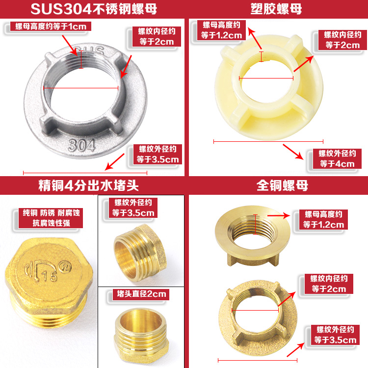 Hot and cold single cold faucet Stainless steel base Faucet Nut Screw fittings Water pipe plug Gag Decorative cover
