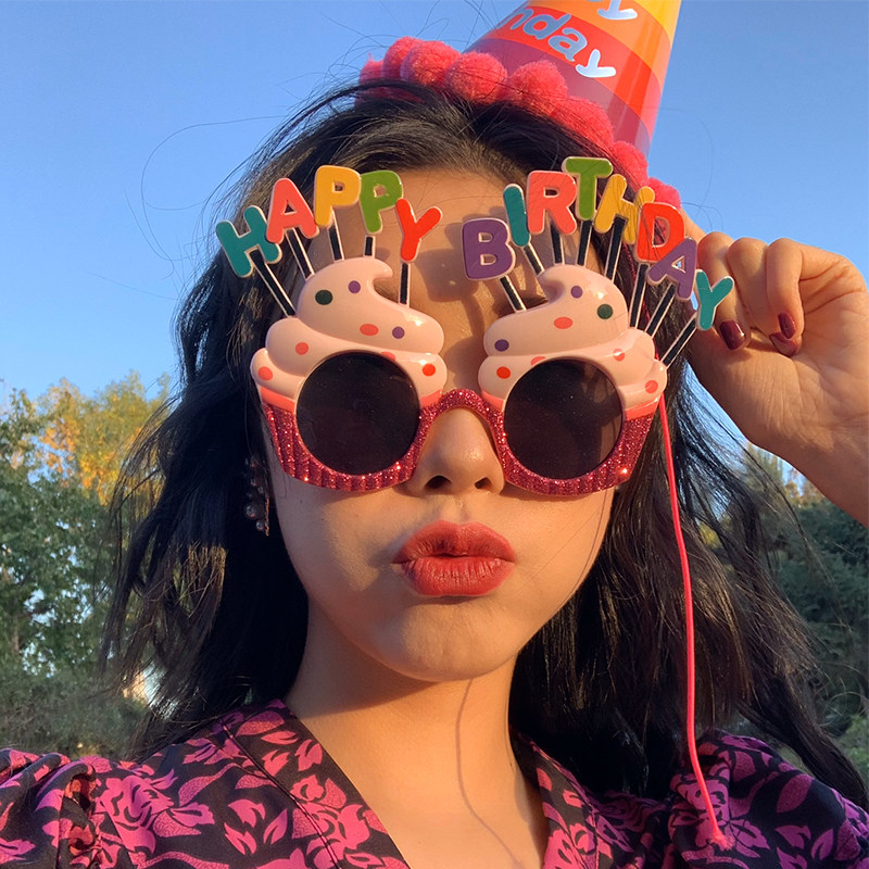 Little red book with children's birthday party glasses creative birthday cake glasses Photo props glasses funny