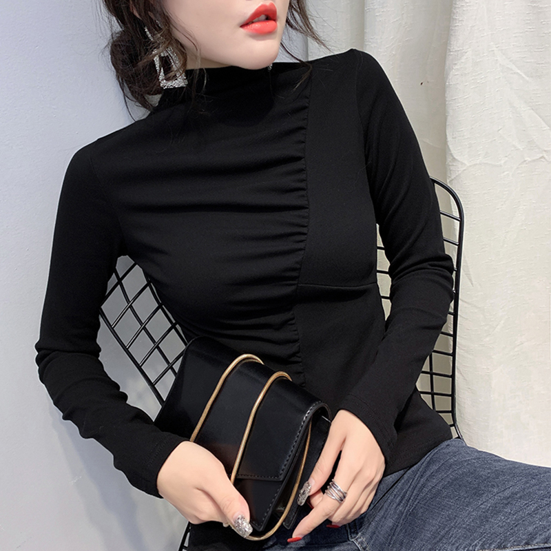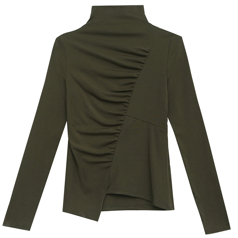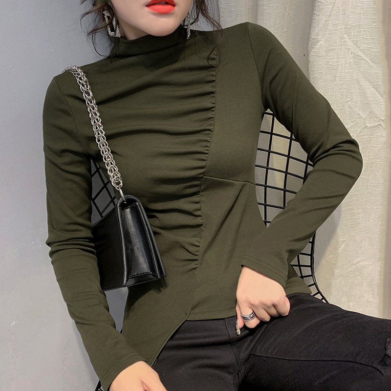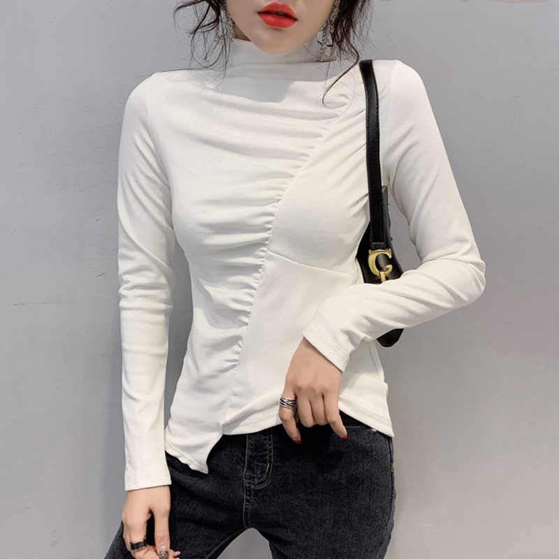 Irregular Beating Undershirt Woman 2022 New Spring Dress Foreign Pie with a hairy T-shirt woman long sleeve with high collar blouses