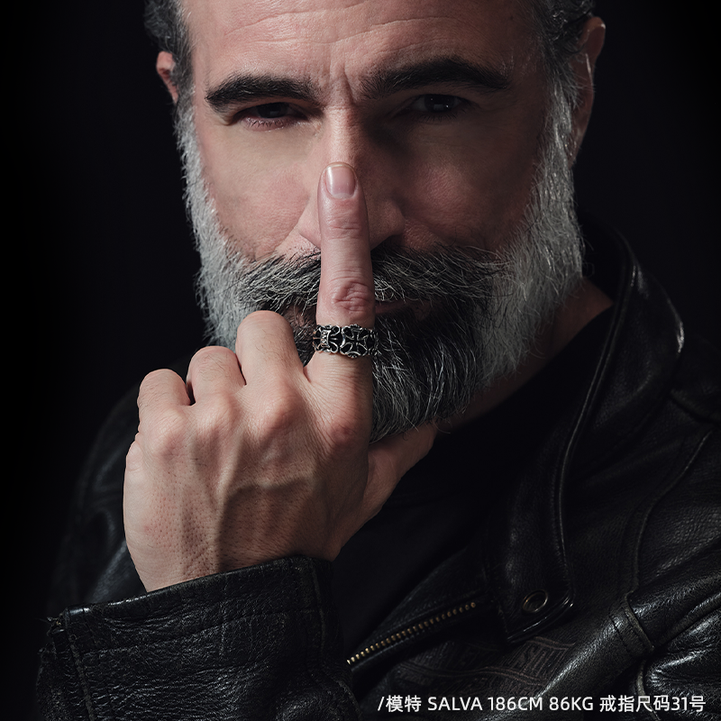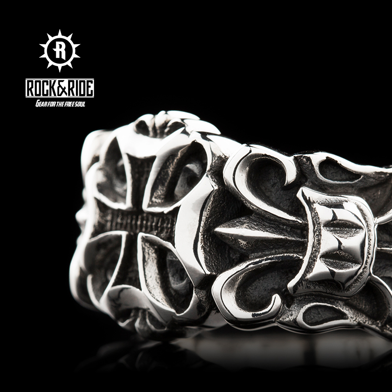 (Official) ROCKRIDE Small Cross Chapter Ring 925 Pure Silver Male Personality Retro Tide