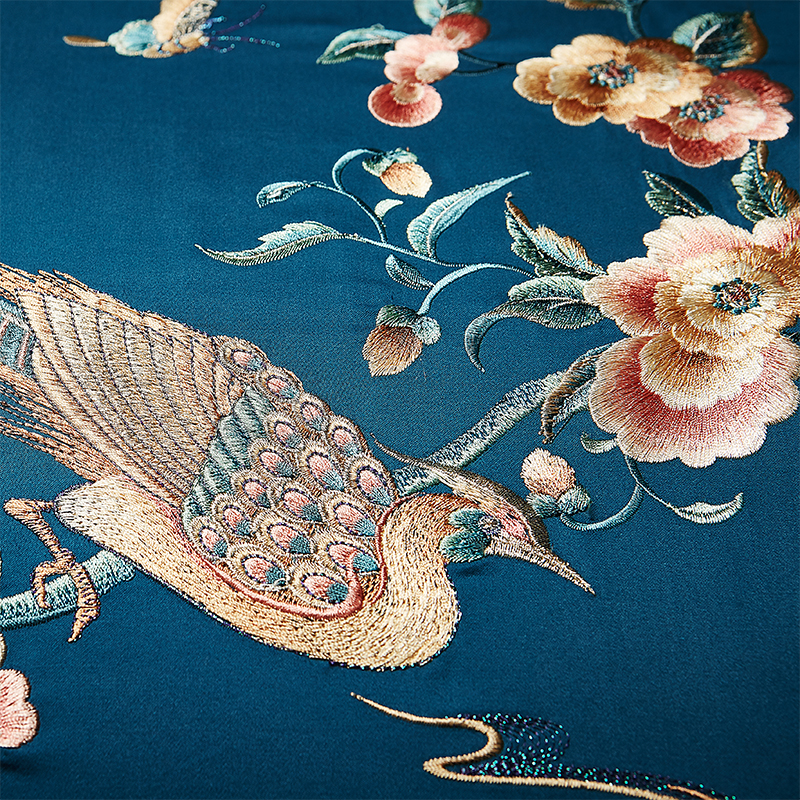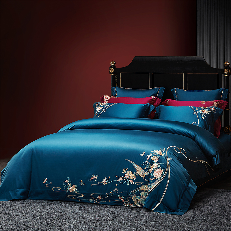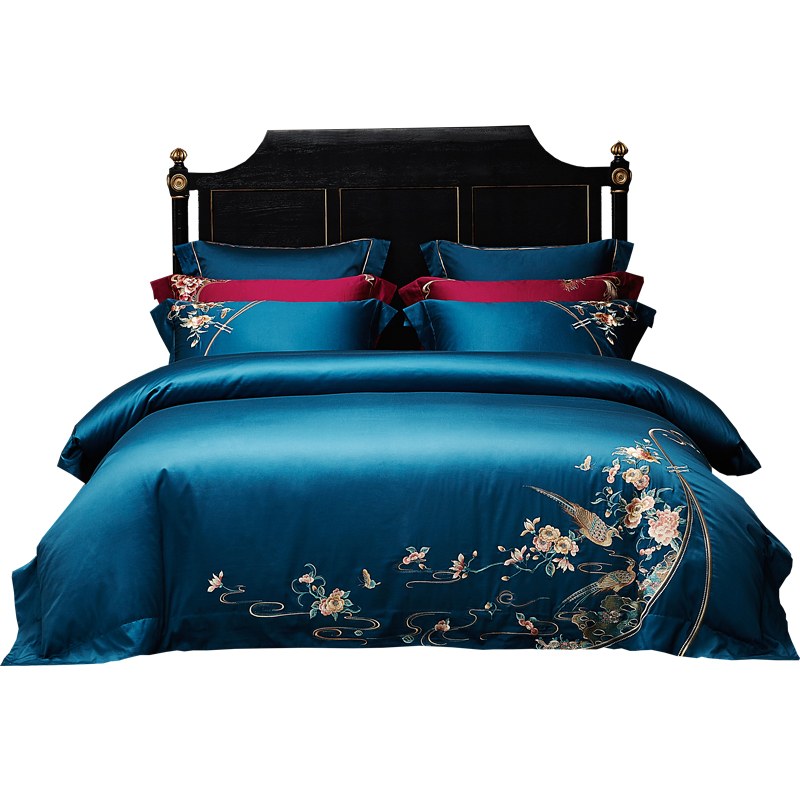 New Chinese home bed Accessories Festive Magpie Full Cotton 140 Blue Embroidered style board room Soft with Chinese wind four pieces