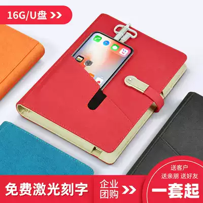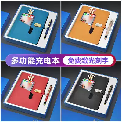 Creative and practical multifunctional notebook with mobile charging business notepad customized LOGO to send customers prizes U disk power supply sheet office stationery set high-end meeting record book