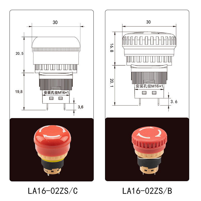 Small emergency stop button switch short mini-short-body short foot mechanical controller manipulative hand LA16-02ZS B C