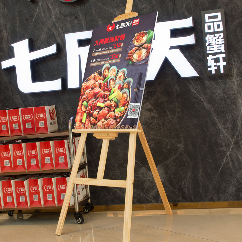Wooden Billboard Poster Rack Mall Indicating Shelf Pop Exhibition Rack Wood Exhibition Stand Upright Floor Type Solid Wood Wedding Wedding Wedding Poster Exhibition Rack Blackboard Wood Shelf Kt Board Exhibition Stand