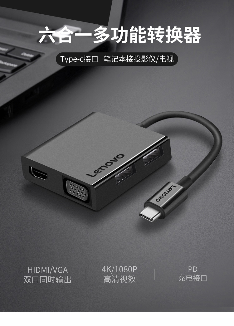 Lenovo Type-C expansion dock USB-C turn HDMI VGA conversion C120 extension line Apple Huawei