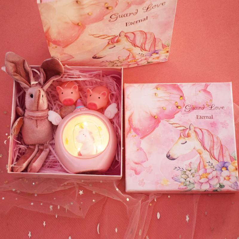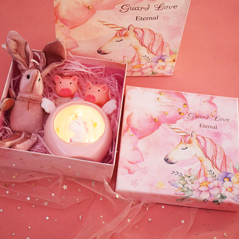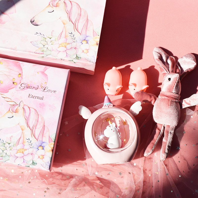 The color of the time gradually layer unicorn nightlight gift box pink angel unicorn gift box blue angel unicorn gift box pink deer hydrangea lamp gift paper packaging blue deer hydrangea lamp gift paper bag