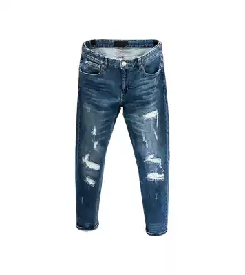 A small number of export single autumn and winter micro-elastic graphite washed, worn, scratched, pierced, slim-fit hip-hop rock style jeans