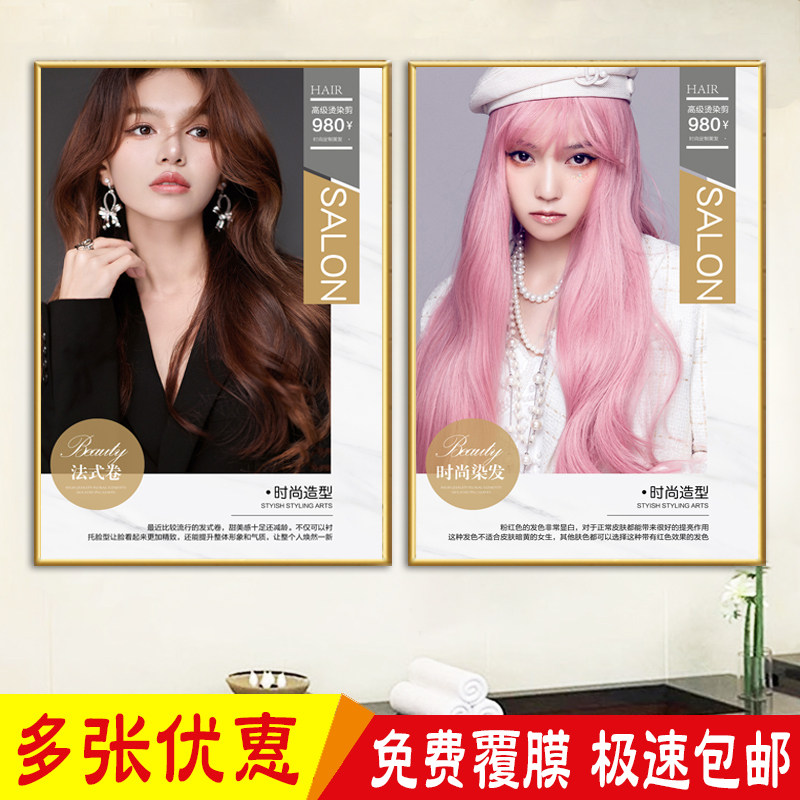 New Hairdyed Hairstyle Photo Self-Adhesive Poster Barber Lady Model Wall Decoration Hairdressing