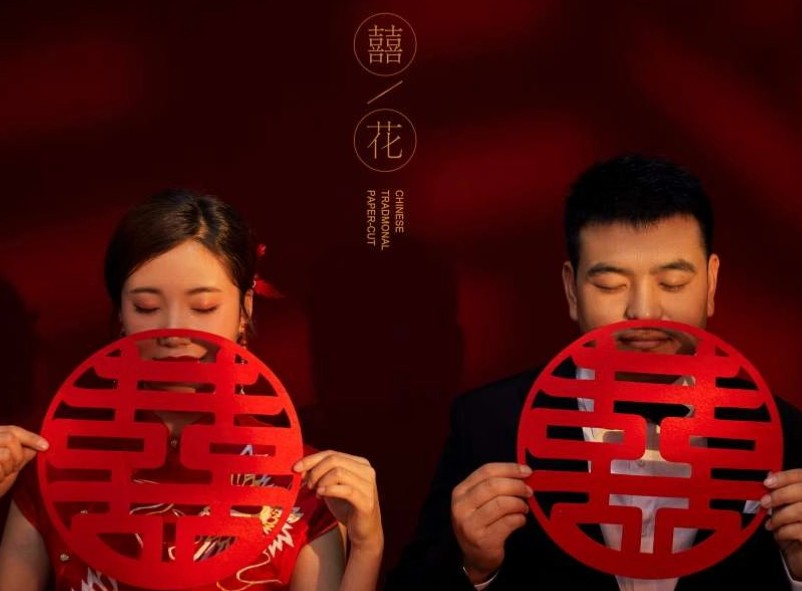 Chinese style ancient clothing photography props hand in hand with double wedding character window flower wedding photography show and props Chinese style photo props