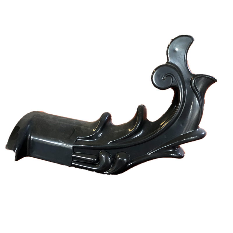 Synthetic resin tile fittings with large teething and positive curly tail flying eaves