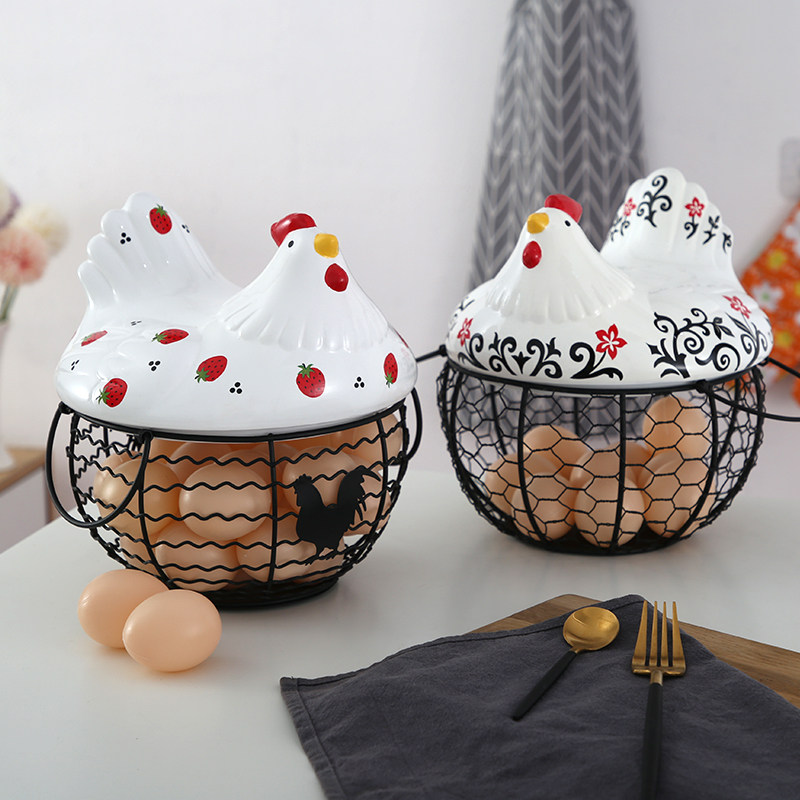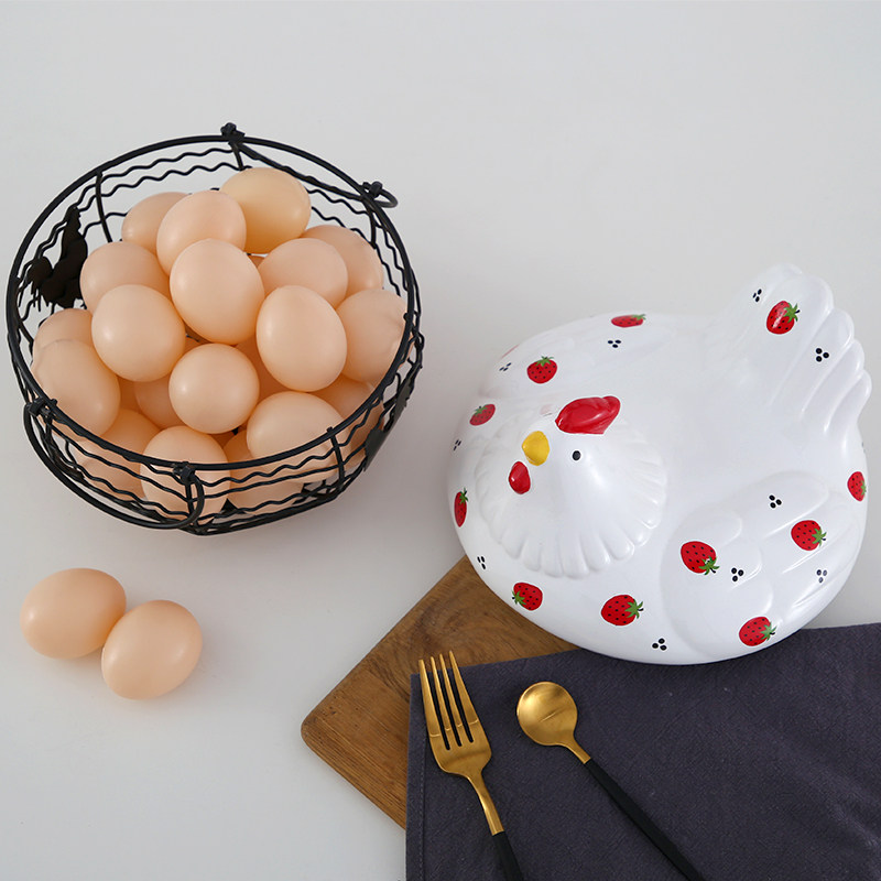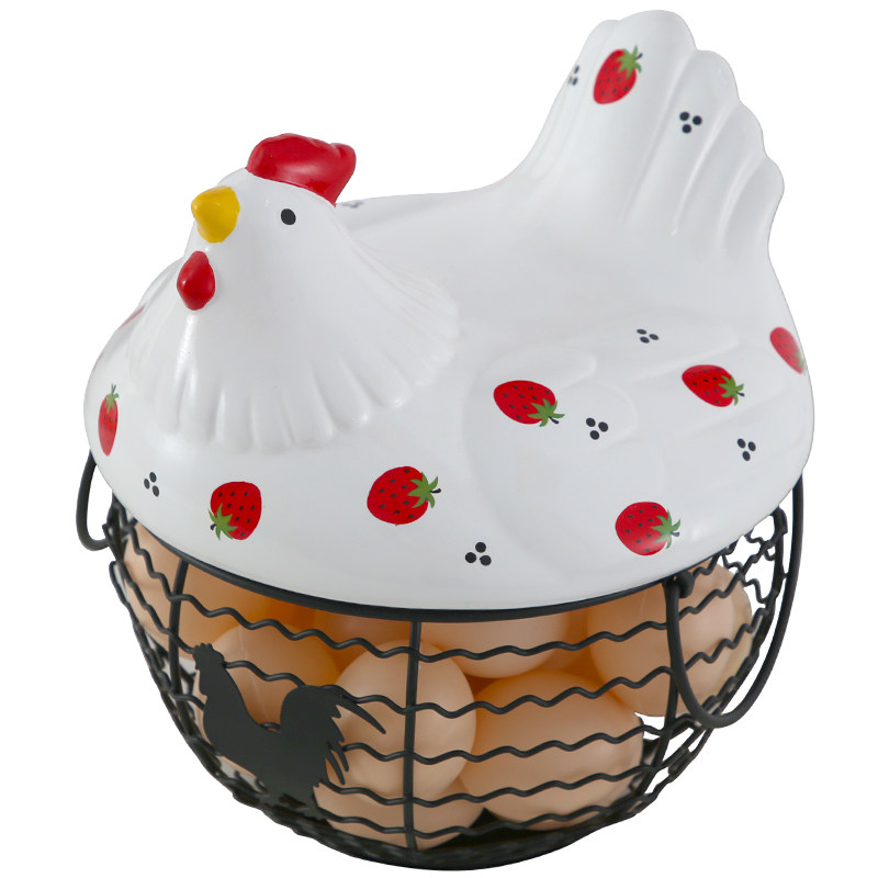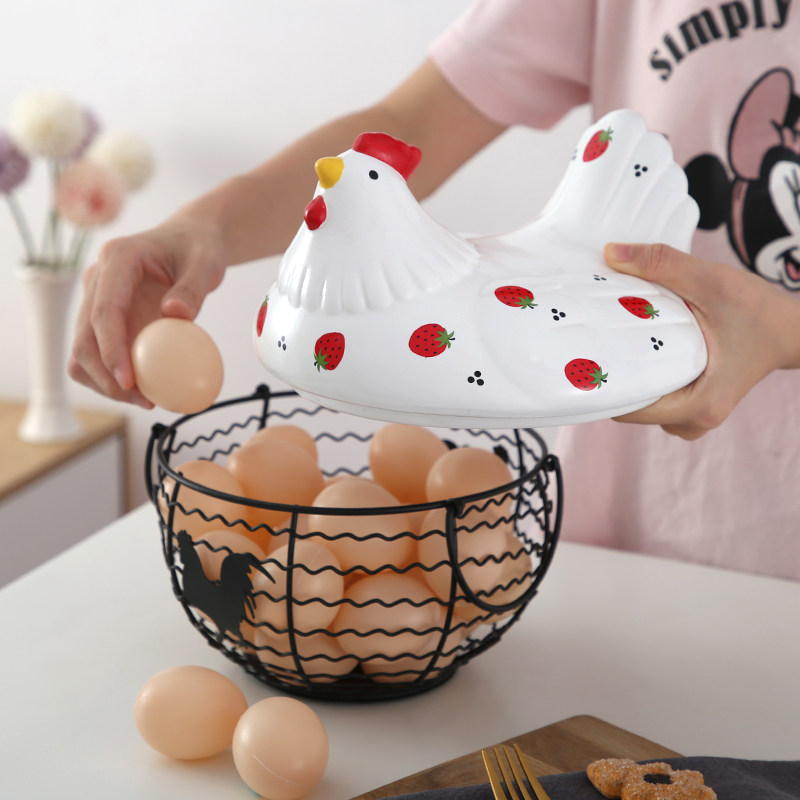 Strawberry Hen Containing Basket Iron Art Basket Ceramic Egg Basket Living Room Fruit Basket Kitchen Nordic Decorations