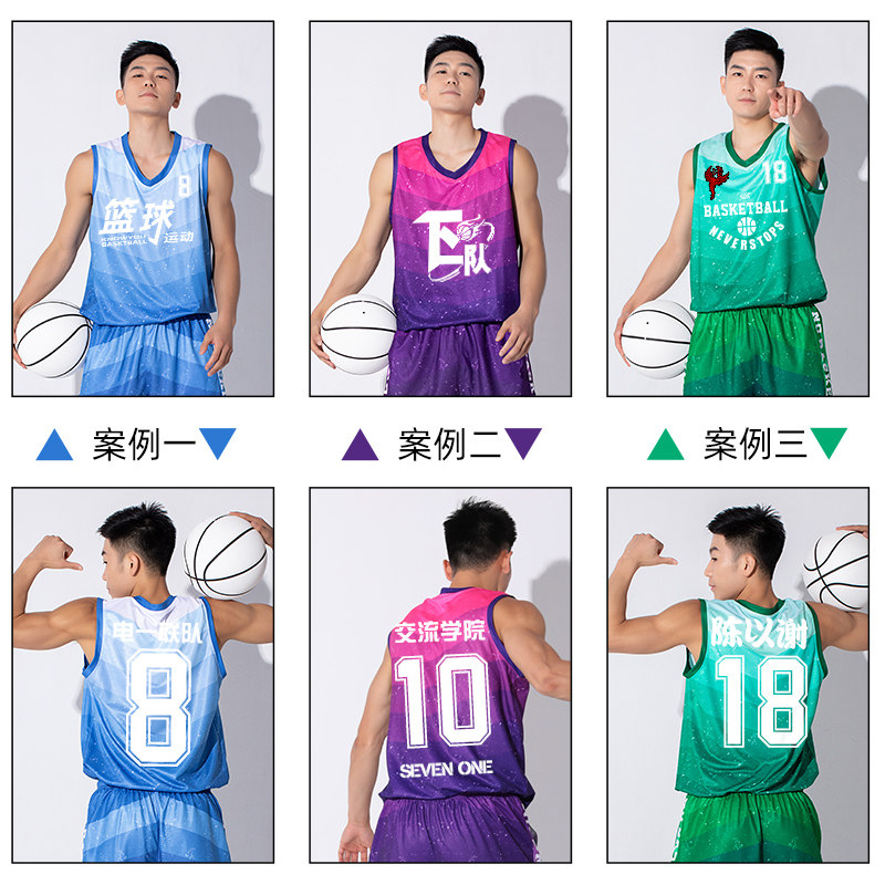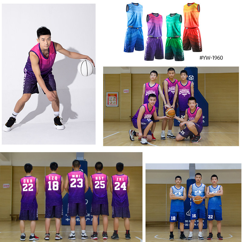 Basketball suit suit Men's custom children's large size gradient sports training suit Game uniform Blue jersey jersey jersey jersey