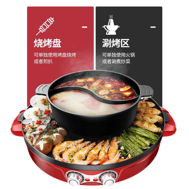 Chenxiao hot pot barbecue shabu-shabu one pot Household multi-functional separable electric oven Soup shabu-shabu smokeless electric barbecue plate