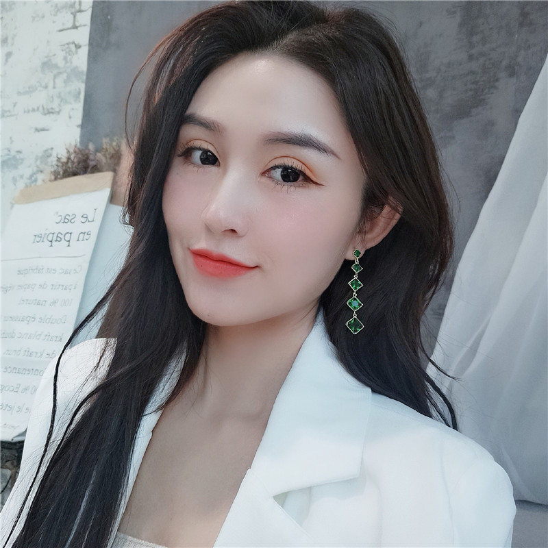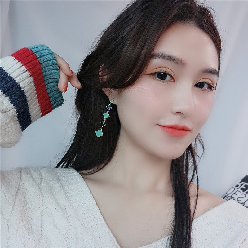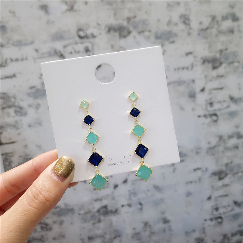 French long version of blue gemstone earrings women's high-end ear needles simple temperament all-match earrings retro new earrings