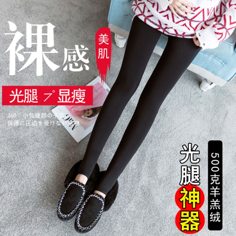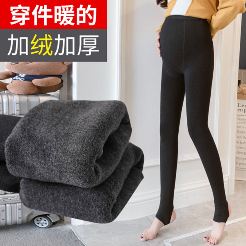 Pregnant women's bottoming socks autumn and winter outer wear leggings plus velvet thickening winter anti-abortion cotton pants rompers socks stepping on feet winter clothes