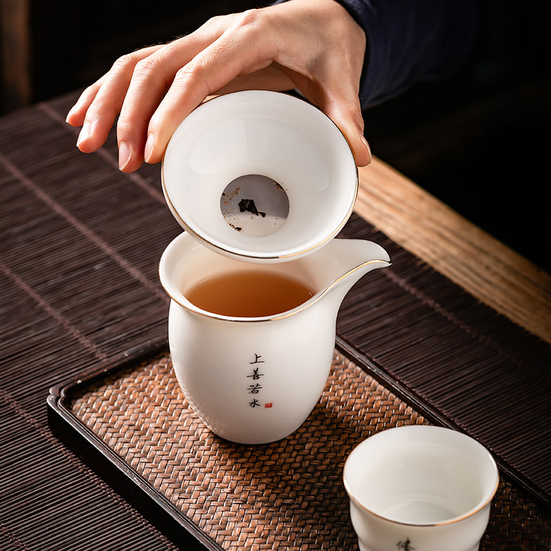 Defied goat fat white jade ceramic tea drain Zen sketching tea leaf filter sleeve group utiliturg tea with tea filter tea filter tea filter