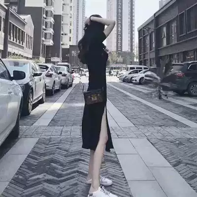 Beach dress women Summer Sanya seaside holiday dress beach dress Super fairy small black dress wear photo clothes travel