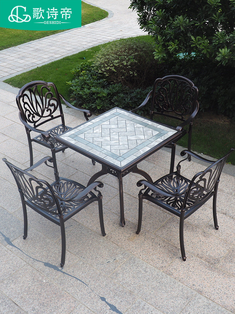 3 meters square with LED lamp parasol with 70kg base Cell tile stand one table four chair 82*82cm square table Cell tile stand 150*90 tables with six chairs green