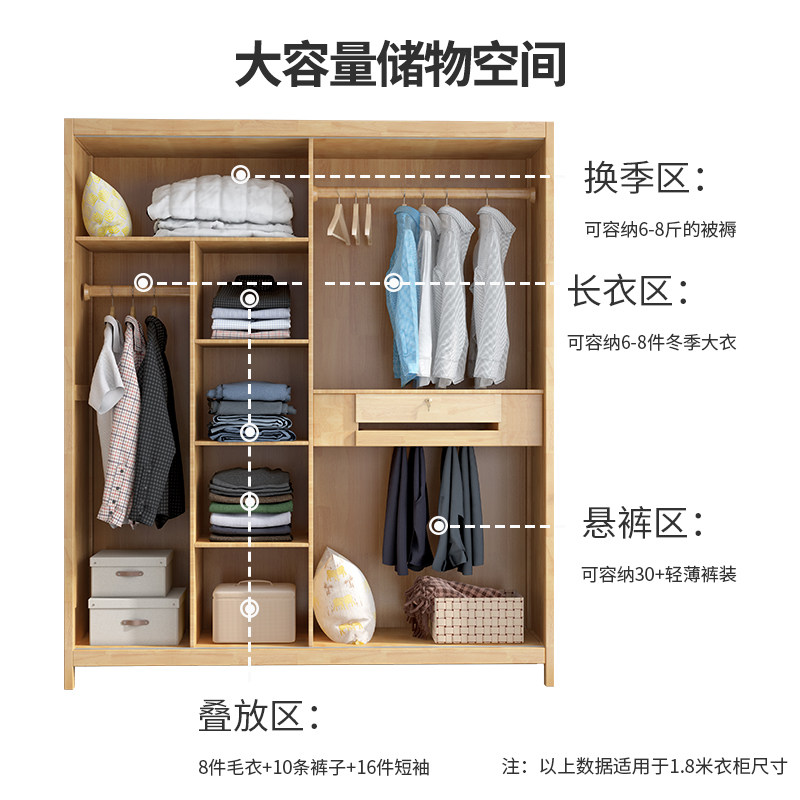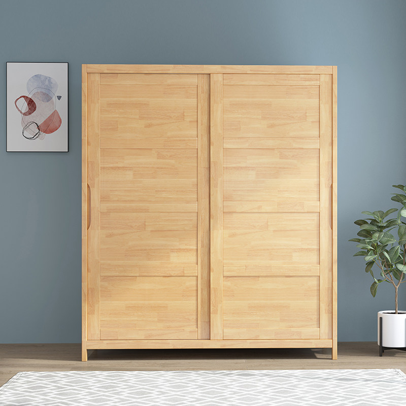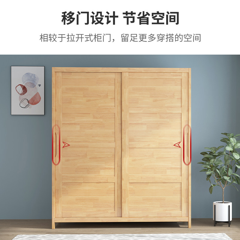Nordic solid wood wardrobe sliding door simple modern small apartment bedroom storage cabinet wardrobe set furniture