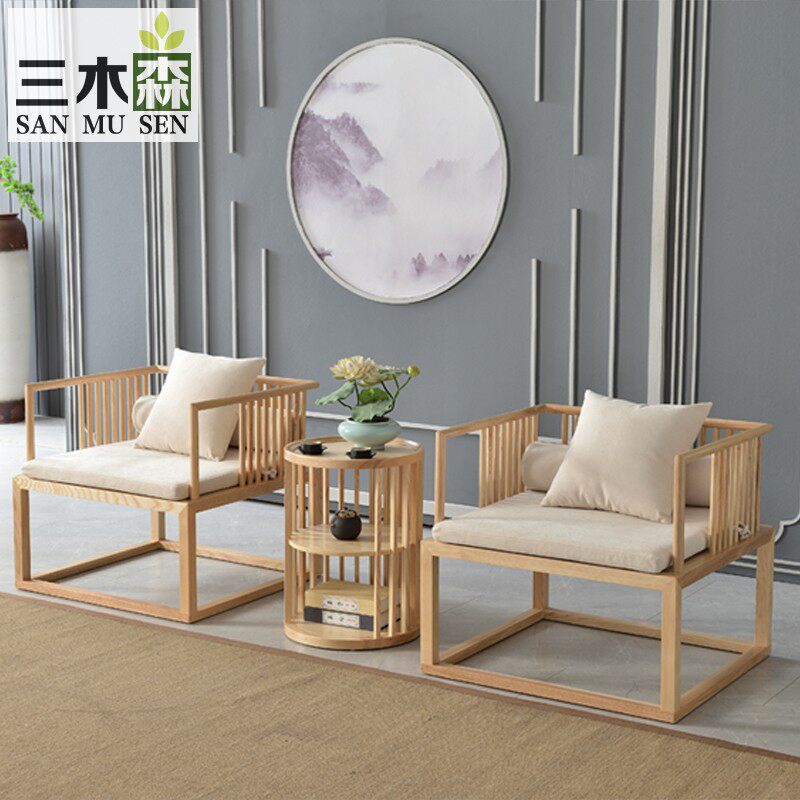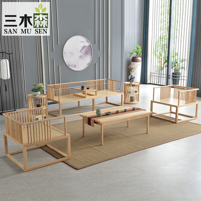 New Chinese solid wood sofa Combined meditation Modern minimalist original wood color China Wind Living room Minjuku Hotel Club