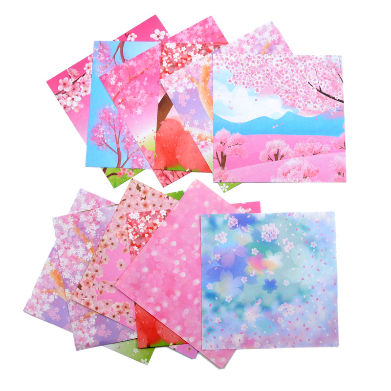 Square double-sided cherry blossom hand-printed color paper thousand paper crane love paper jam children diy stack paper material