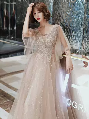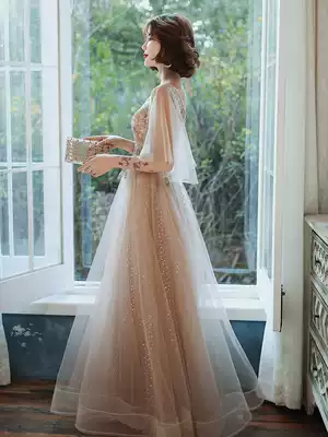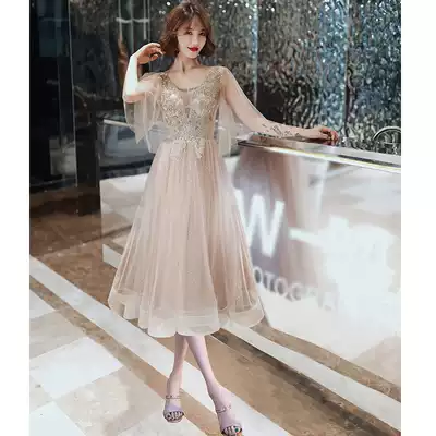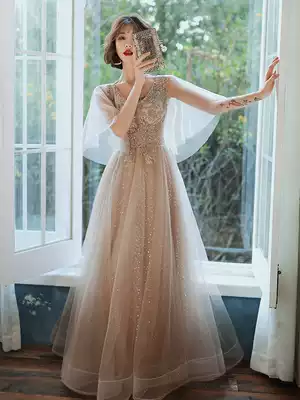 Fairy evening dress high-end texture luxury 2021 new summer birthday banquet dress super fairy bridesmaid dress champagne color