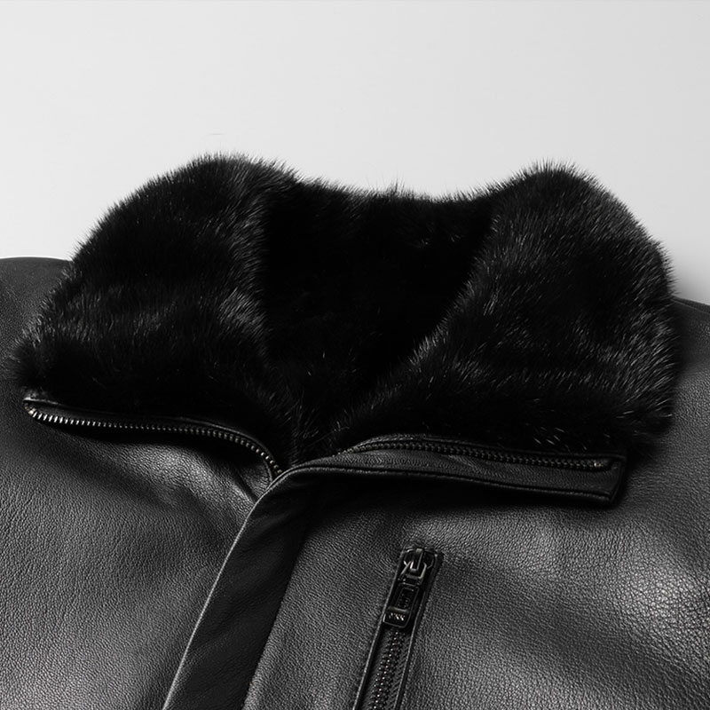 Henning mink fur coat men's mountain goat leather water minke leather grass whole mink liner fur integrated with long version genuine leather fur coat tide