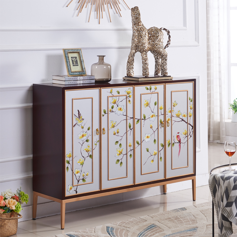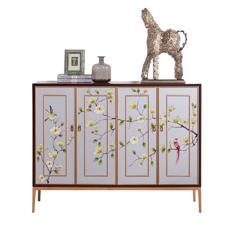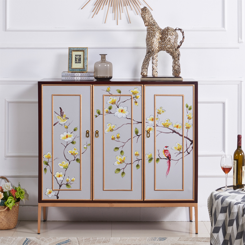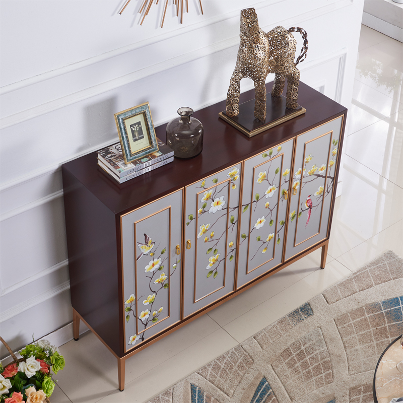 New Chinese Xuan Guan Cabinet Home Doorway Storage Decoration Cabinet American Dining Cabinet Light Lavish Painted Solid Wood Shoes Cabinet Furniture