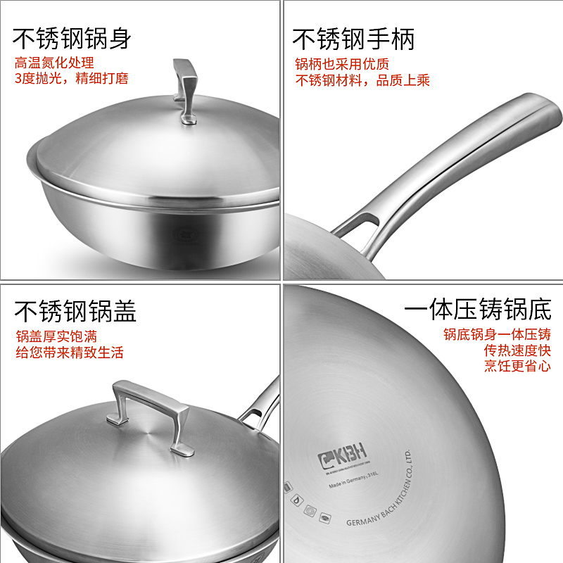 German Kangbach frying pan no oil smoke non-stick pan 316 stainless steel honeycomb uncoated household frying pan universal