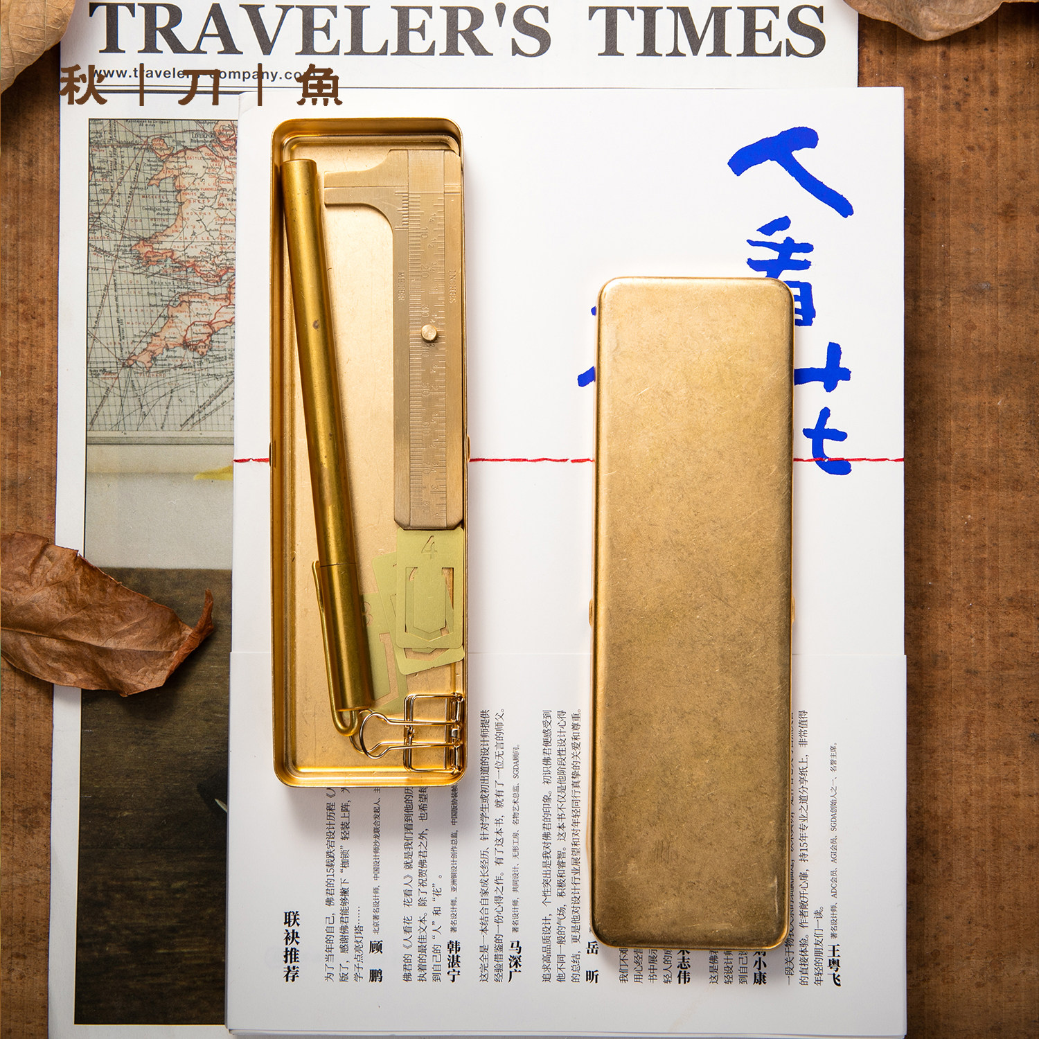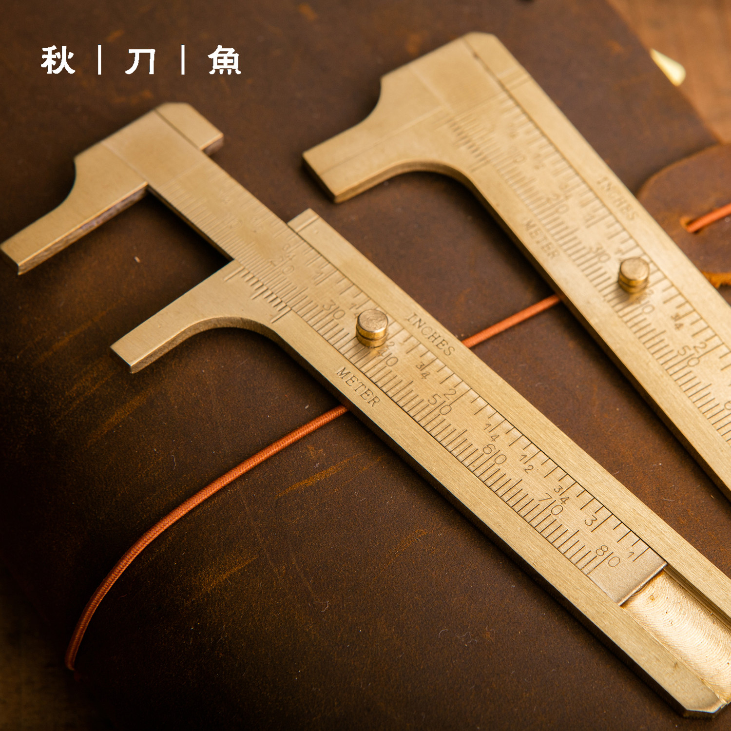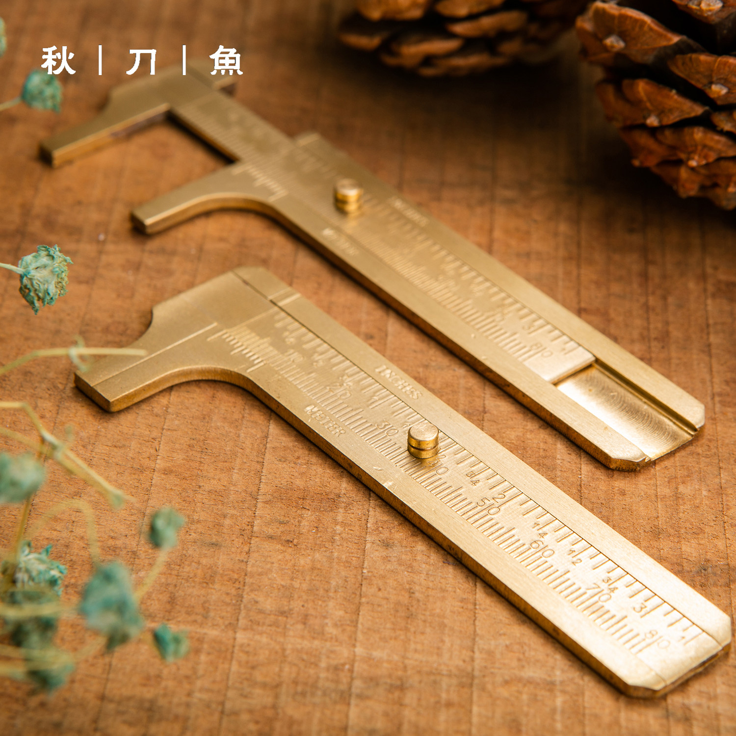 Autumn Knife Fish Brass Stationery Brass swab Ruler Portable Mini caliper brass ruler Mini Man playing outdoor measuring ruler tool