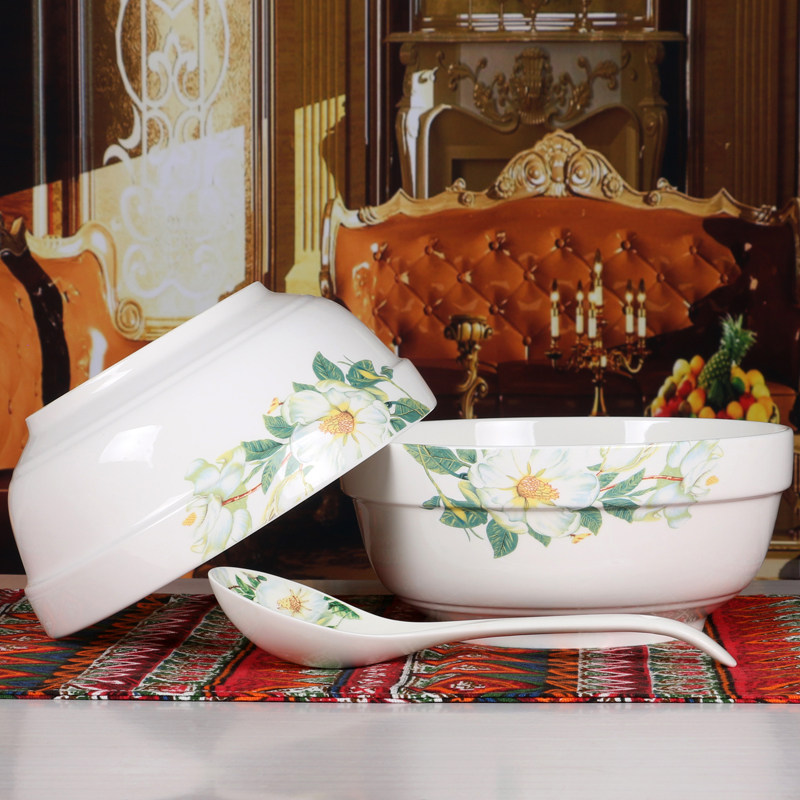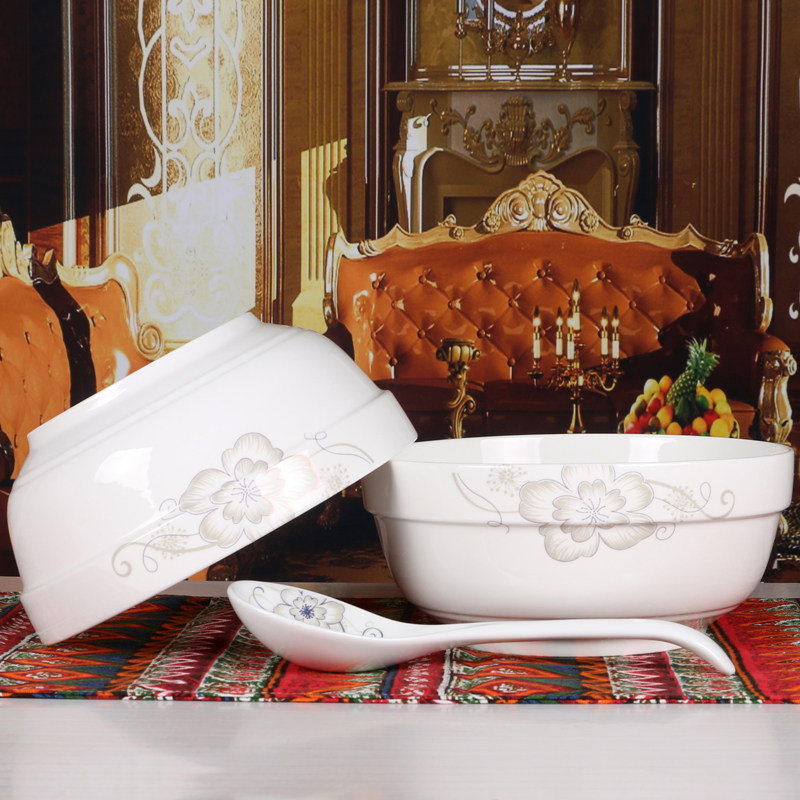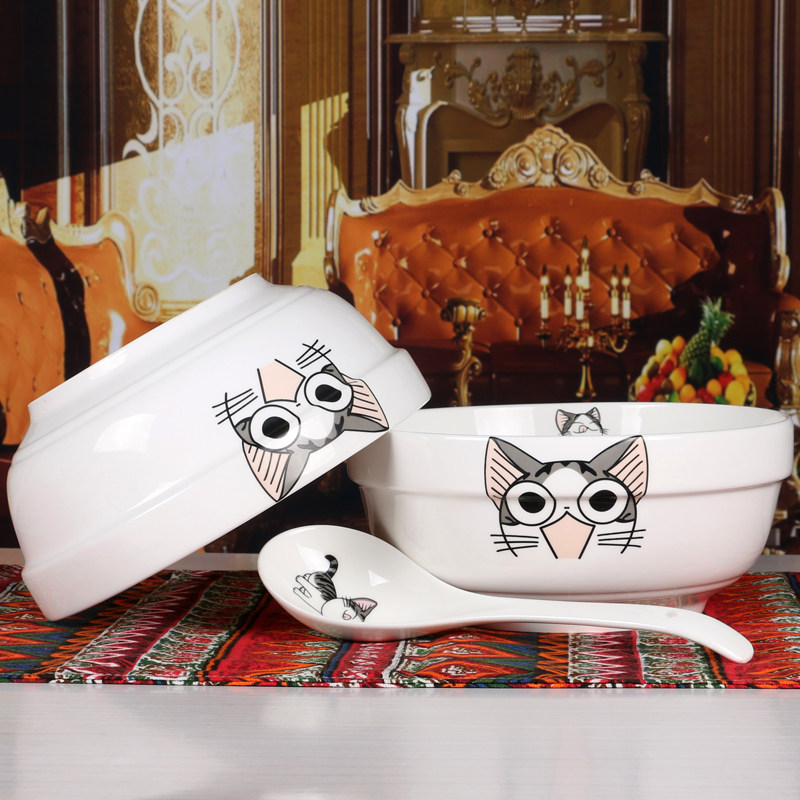 Pure white 7-inch guard side bowl 2 large spoons 1 wild lily 7 inch protective side bowl 2 large spoons 1 gold branch 7 inch protective side bowl 2 large spoons 1 cat 7 inch protective side bowl 2 large spoons 1