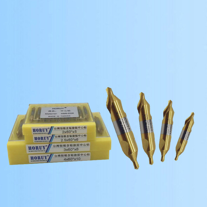 High quality Taiwan HORUY cobalt-containing high-speed mesh titanium coating center drill type A 90 degree spiral chip removal groove B120