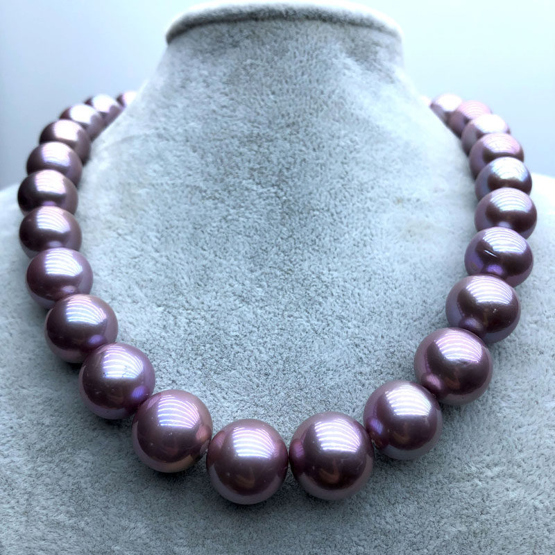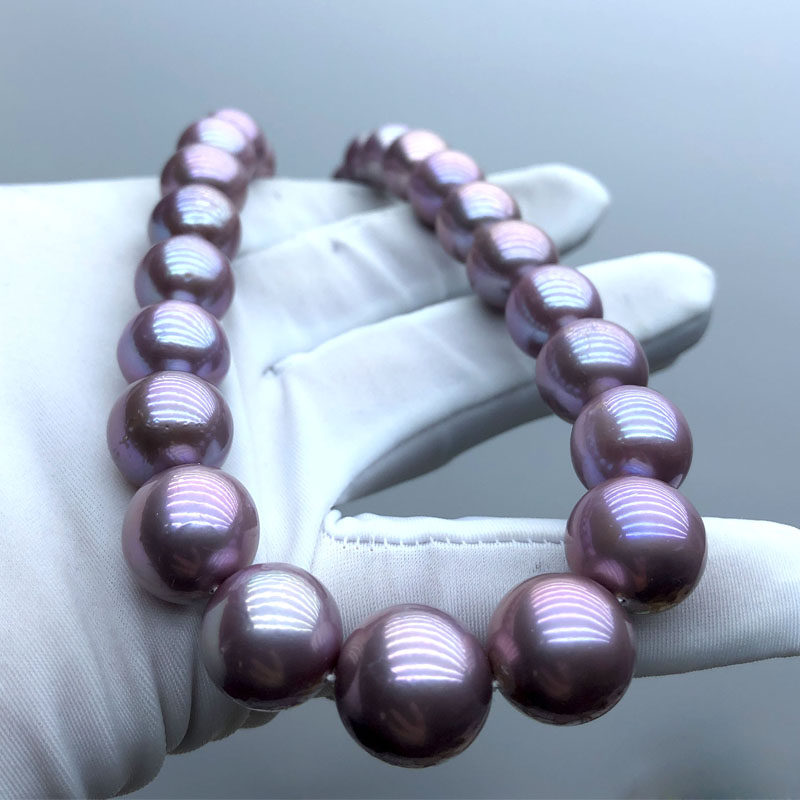 Natural Edison Pearl Necklace Demon Purple Blueberry Purple 12-15mm Round High Strength Light Gift Mother