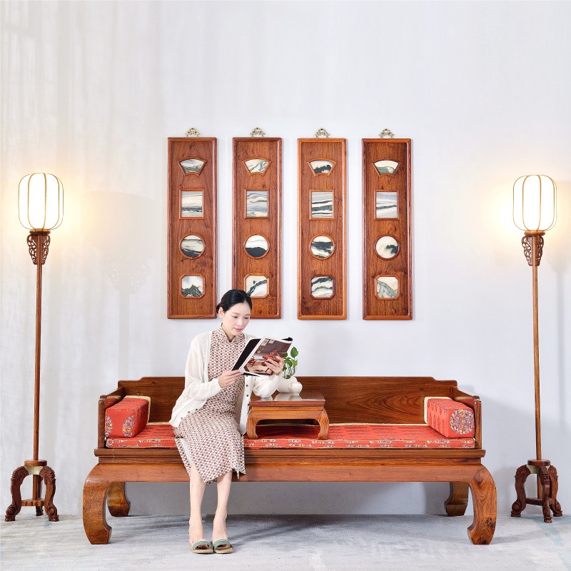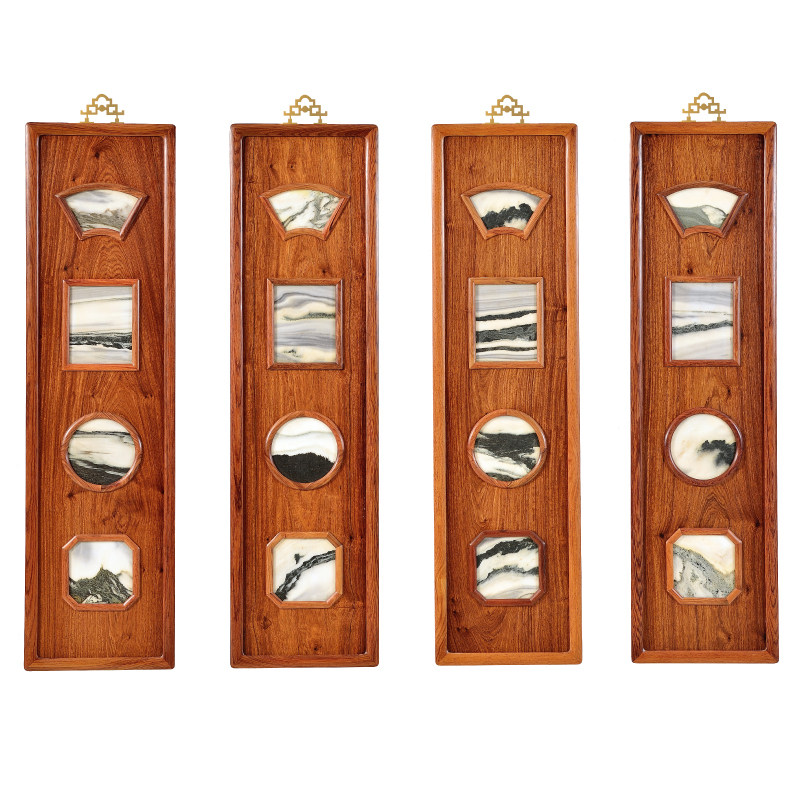Art union Yum Chinese mahogany hanging screen living room entrance solid wood four screen decoration Zen wall-hanging craft gift decoration gift