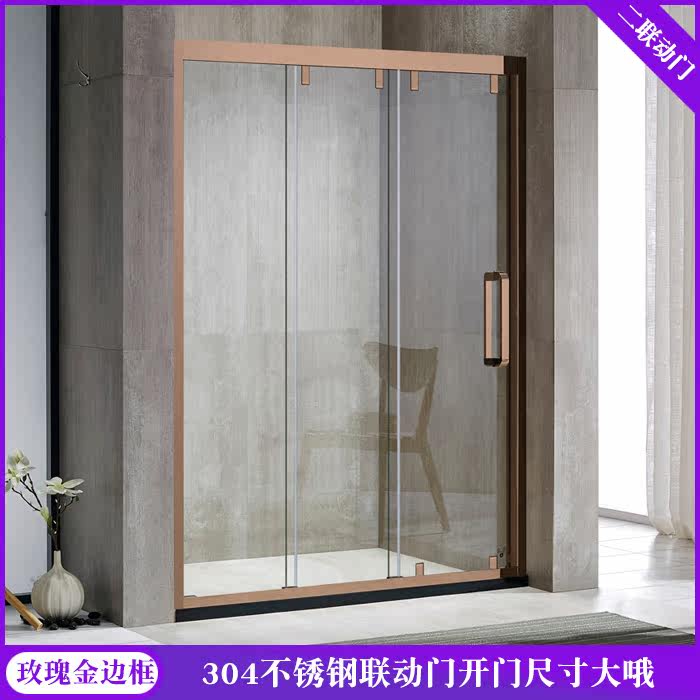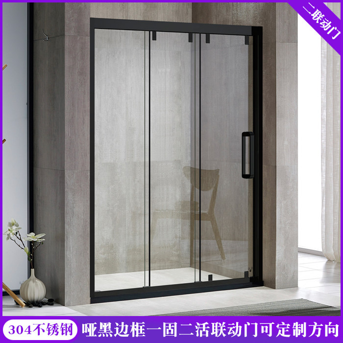 Custom shower room A shape three linkage double sliding door dry and wet separation bathroom powder room partition glass bath room