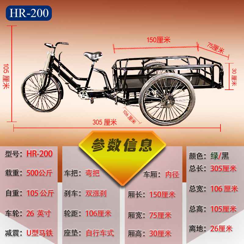 Jiangnan Yanan 1 5 m long foot tricycle manpower load bike large - scale truck can be changed electric