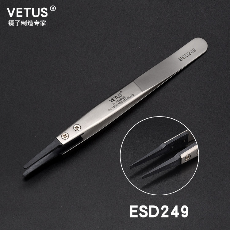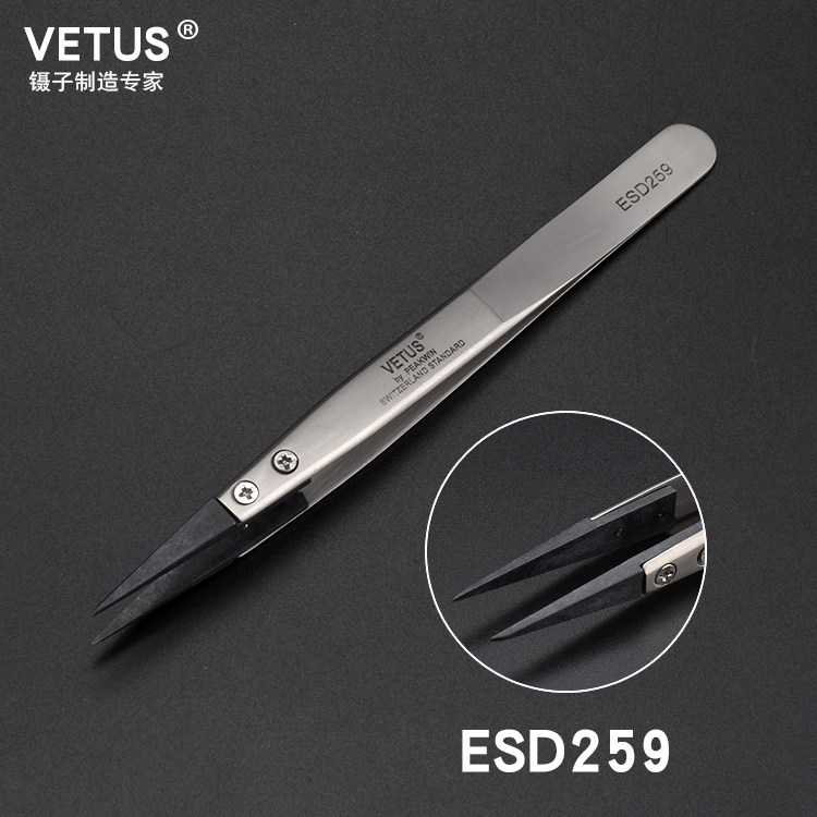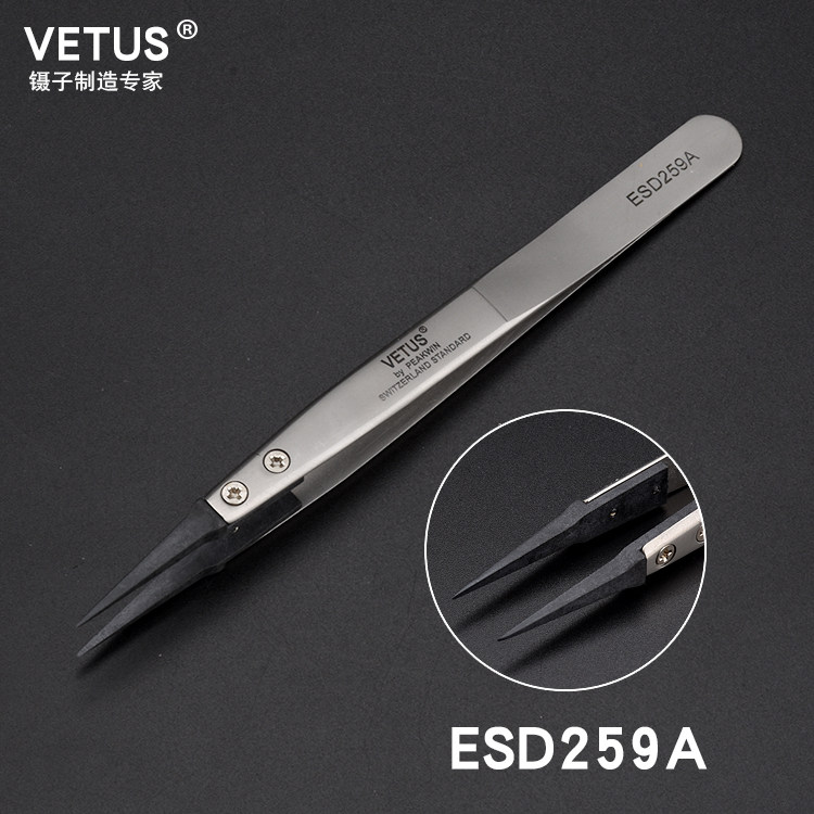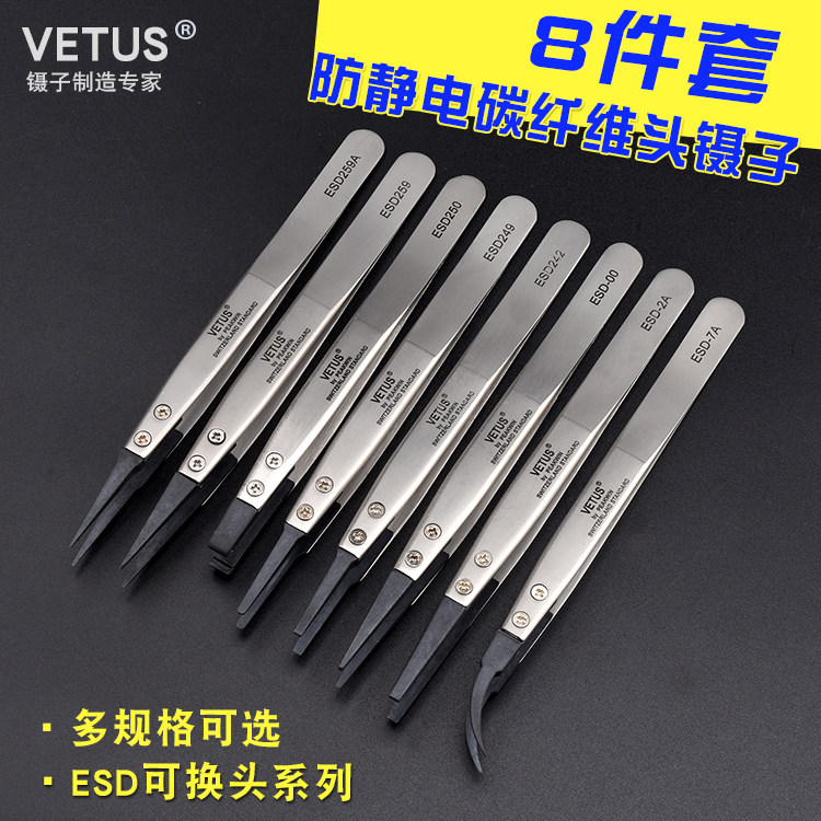 VETUS Head-changeable ESD anti-static tweezers full set of stainless steel tweezers carbon fiber conductive plastic tweezers