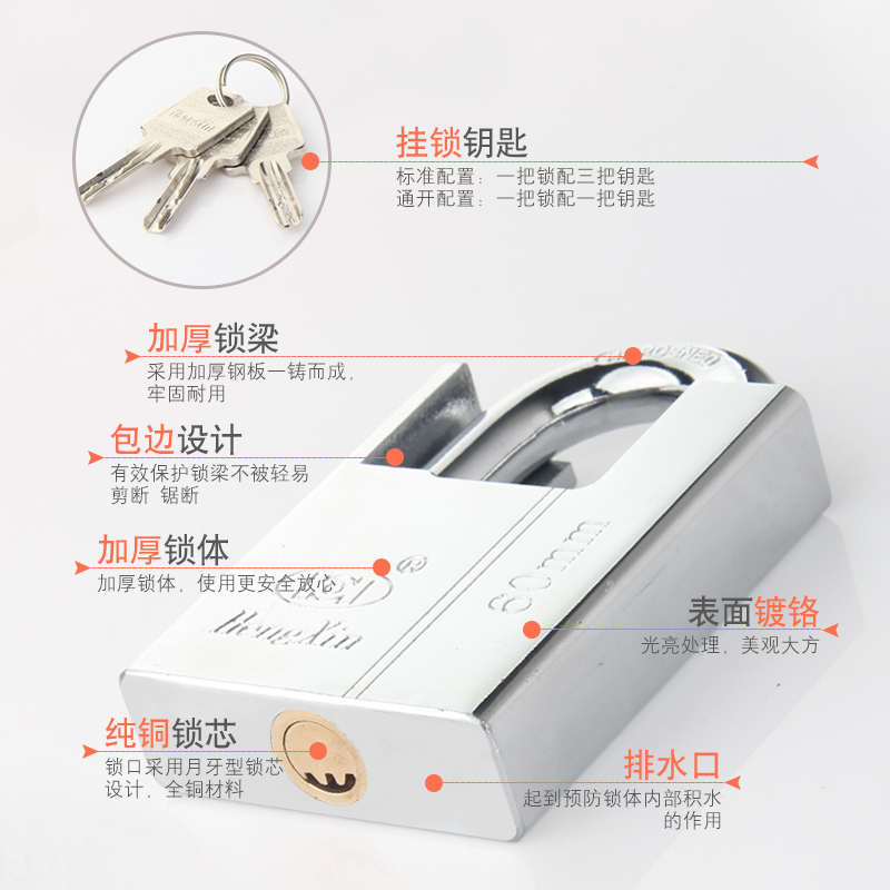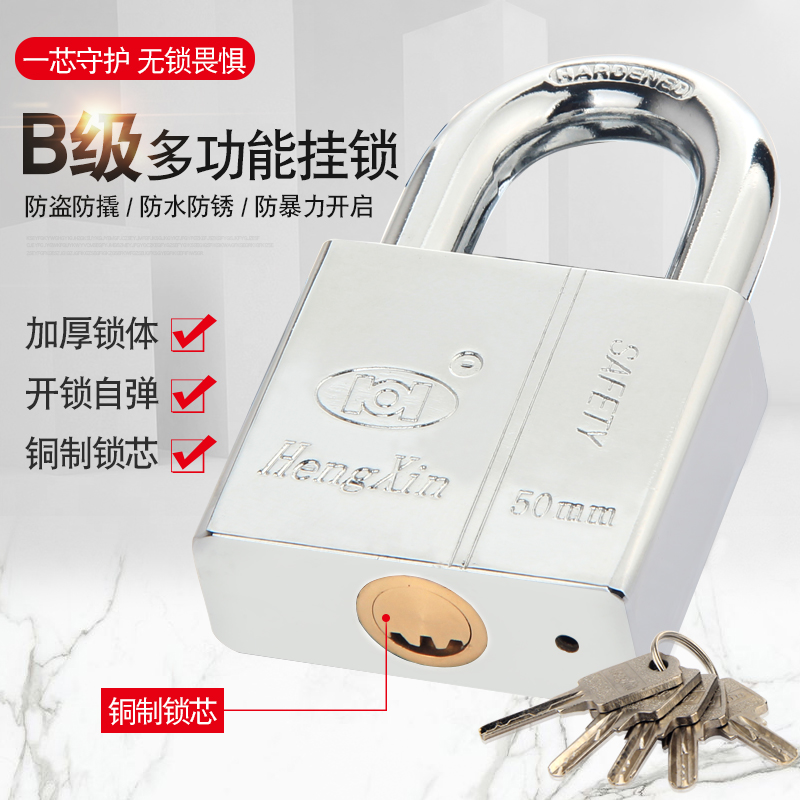 Boutique self-elastic padlock Anti-theft lock Door lock Waterproof anti-rust anti-pry lock through the lock Household lock copper lock core