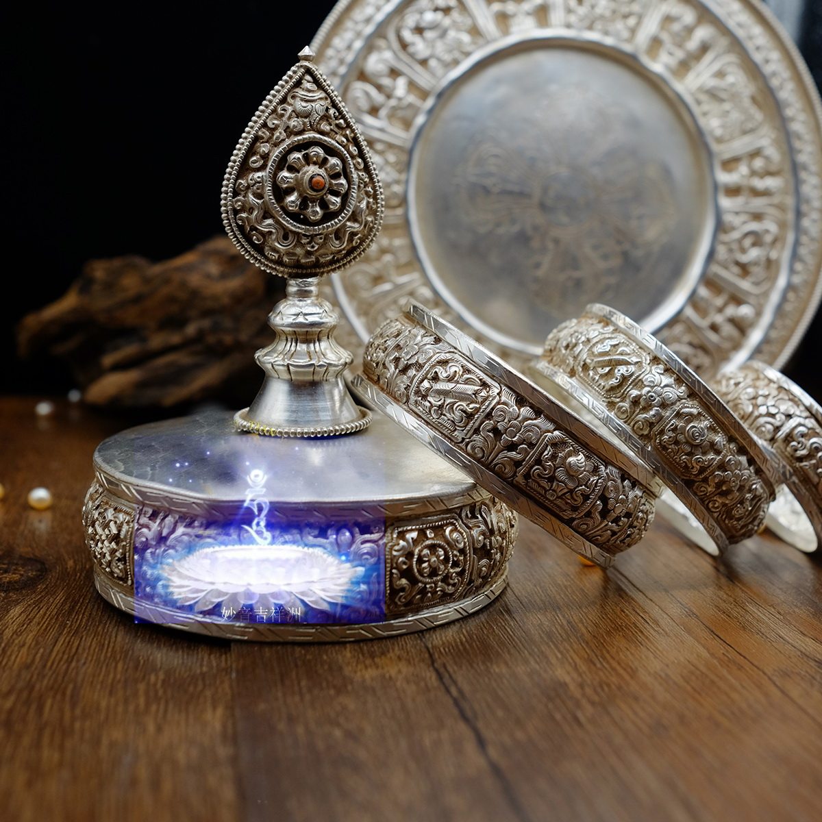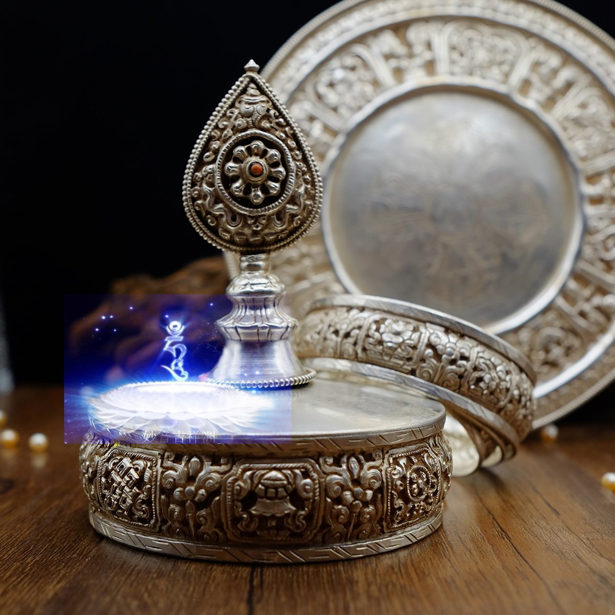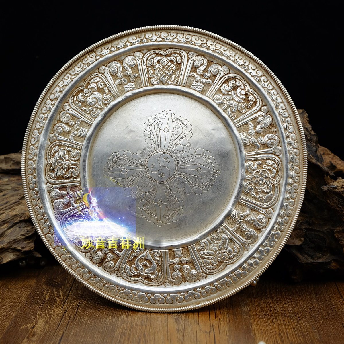 Buddhist supplies Nepal handmade red copper-silver eight auspicious reliefs Manzaman tea Luo for disc diameter 19CM