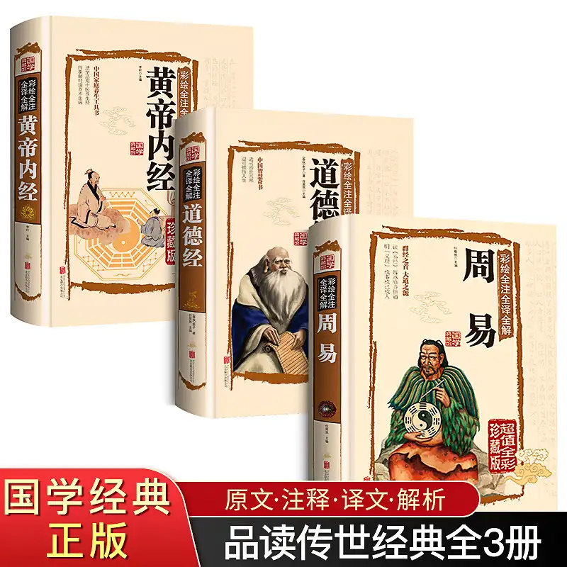 Hardcover Color Pattern Commentary Genuine 3 Volumes Zhou Yi Tao Ching Huangdi Neijing Painted Translation Notes Full Note Illustrated I Ching Complete Vernacular Interpretation Complete Interpretation Basic Knowledge Original Original Laozi Guoxue Book