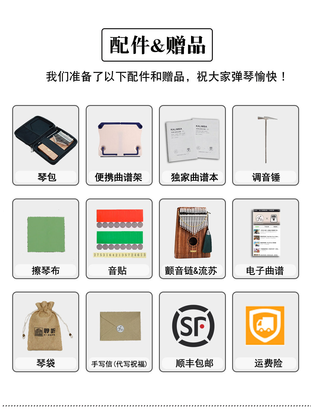Thumb piano than three dumb guitar carlimba listen to African yellow sandalwood 17 notes Kalimba beginner score