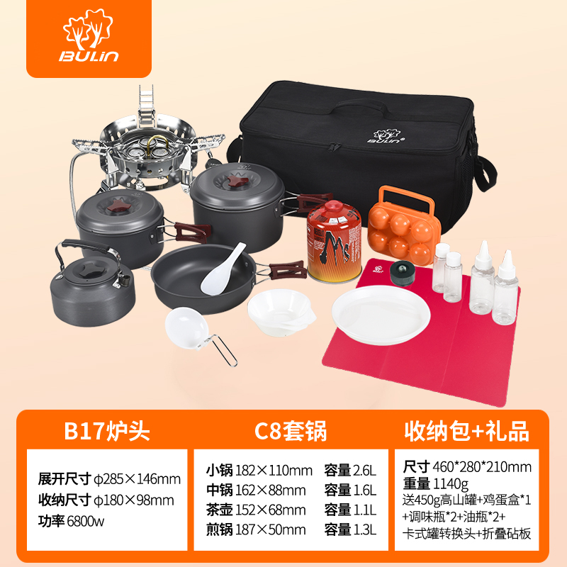 Shanding 4 people set (B17 + C8 flat cover) Shanding 4 people set (B17 + C8) Shanding 6-7 people set (B17 + C9) Shanding 7-8 people set (B17 + C16) Shanding 10 people set (B17 + C10) Bulin B17 three-head fierce furnace head power 6800w, windproof furnace
