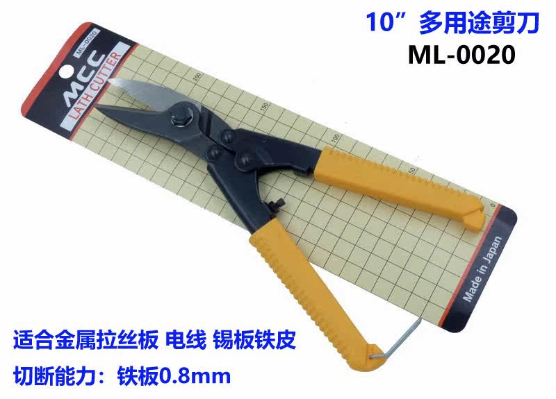 Japan MCC versatile multipurpose 10 inch sheet iron cut ML-0020 stainless steel tinplate wire white iron metal scissors