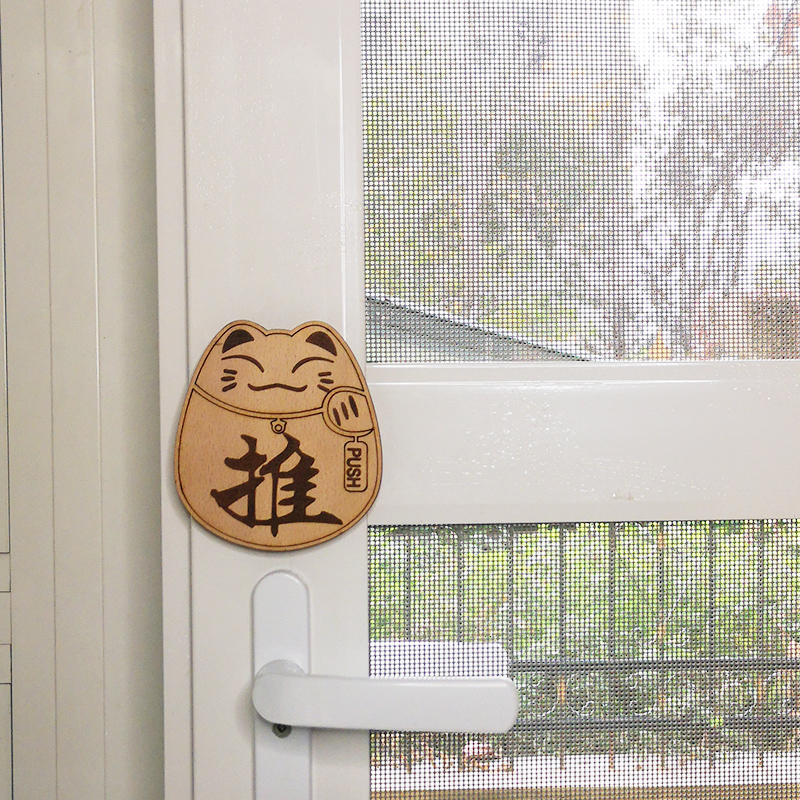 Wooden lucky cat push-pull sign board Glass door sticker Pull-up sign board sign board notice sticker