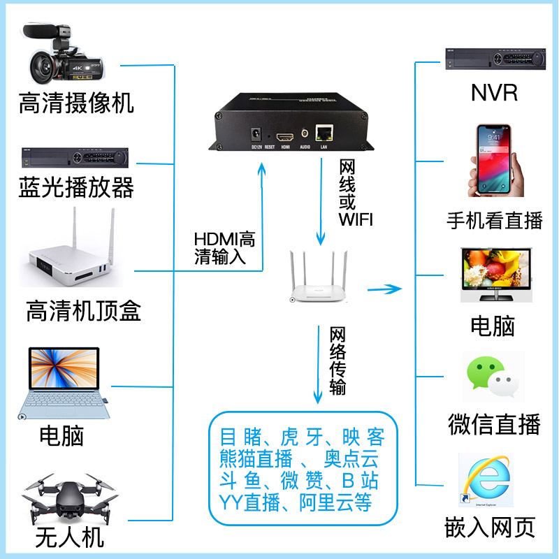 HDMI video live encoder streamer to RTMP SRT ONVIF national standard access NVR recorder